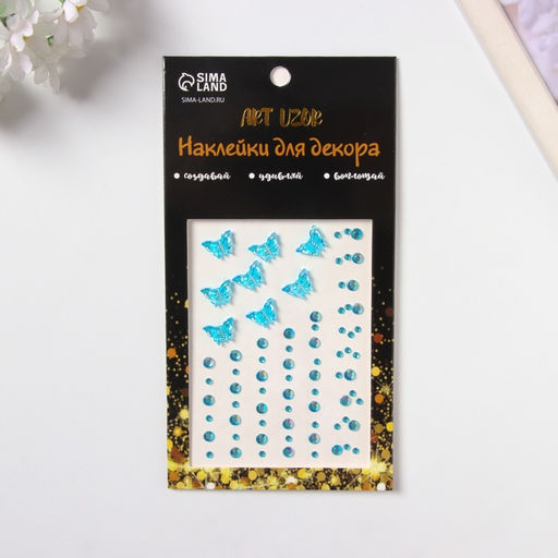 • Наклейка - стразы Полёт бабочки, голубая, 11?7.8 см
