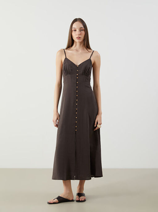 Kalp Yaka B?zg? Detayl? Ask?l? Elbise