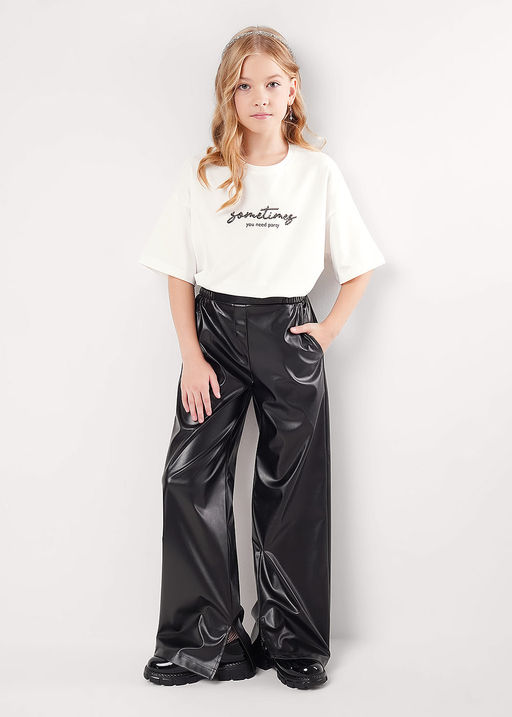 Стильные брюки из мягкой и приятной на ощупь экокожи прямого покроя - мастхэв гардероба. Комфортная и универсальная посадка, эластичный пояс. Сочетайте модель с любой футболкой, рубашкой или блузкой из новогодней коллекции. 60% полиэстер, 40% полиуретан