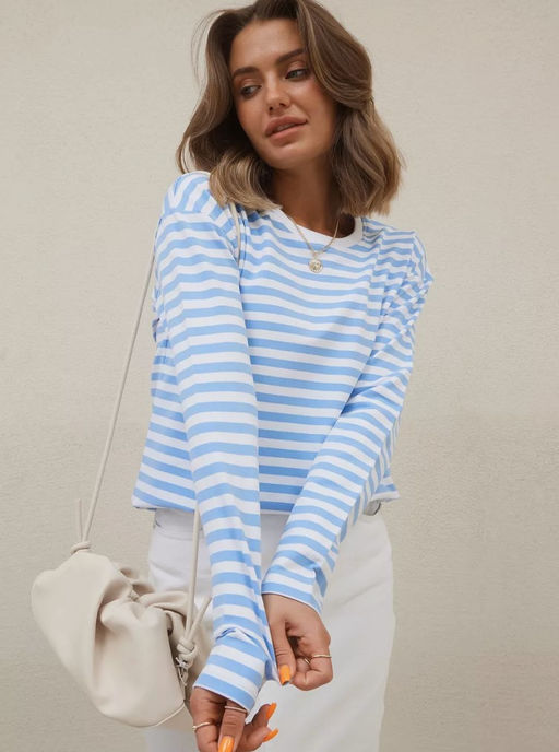 K11781 Лонгслив OVER SIZE (плотный хлопок) ГОЛУБОЙ