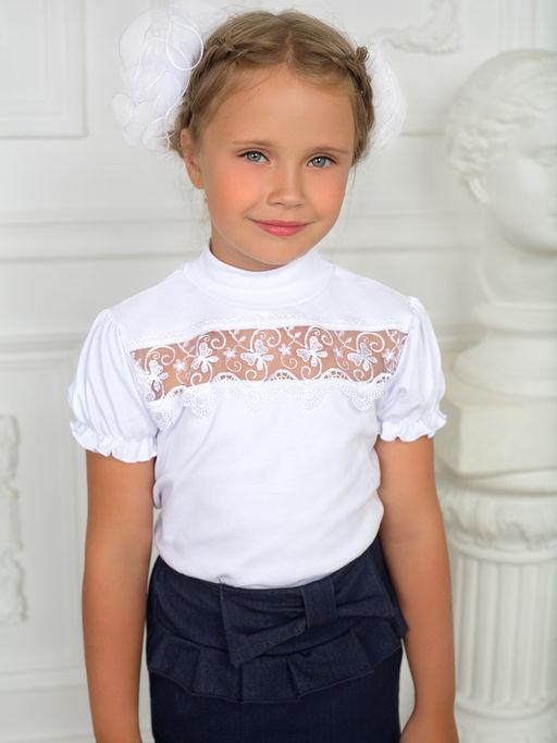 Блузка из интерлока, короткий рукав "фонарик" , небольшая полоска шитья на полочке привлекает внимание. Рекомендвана для школы на каждый день.­