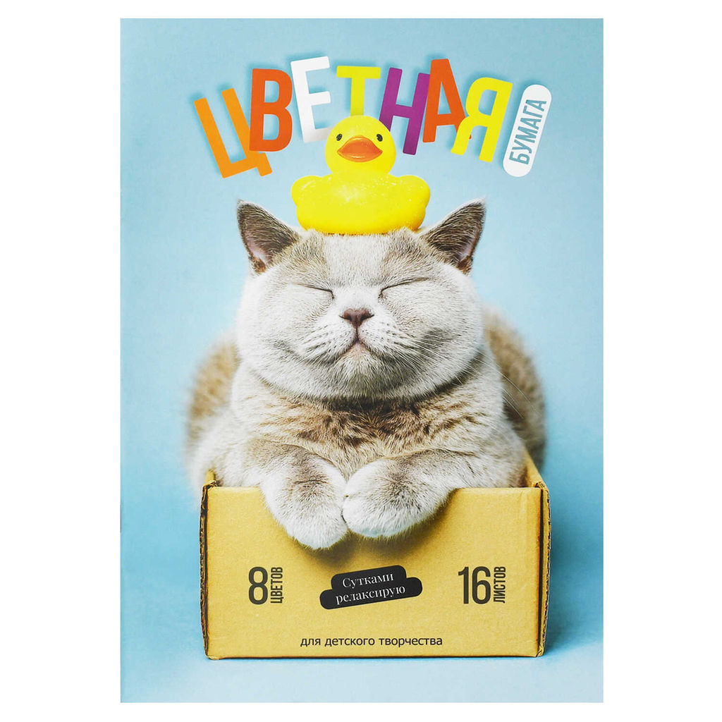 Цветная бумага арт. 73168 КОТ С УТКОЙ /200x275 мм, мягкий переплёт (2 скобы), 16 л, обложка - полноцветная печать, мелованная бумага 130 г/м?, блок - газетная бумага, 45 г/м?, 8 цветов, двусторонняя печать /