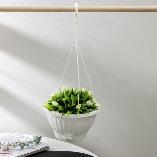 • Кашпо уличное для цветов Альтернатива «Мирабель», 2.5 л, подвесное, с прикорневым поливом, пластик, белое