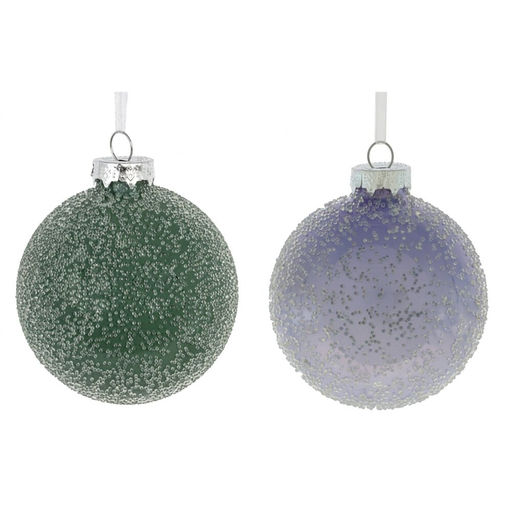 Стеклянный шар с потрясающей фактурой в виде россыпи капель. Это новогоднее украшение непременно порадует вас своим изяществом и прекрасно дополнит праздничный наряд лесной красавицы. Представлен в двух видах: зеленый и сиреневый.
