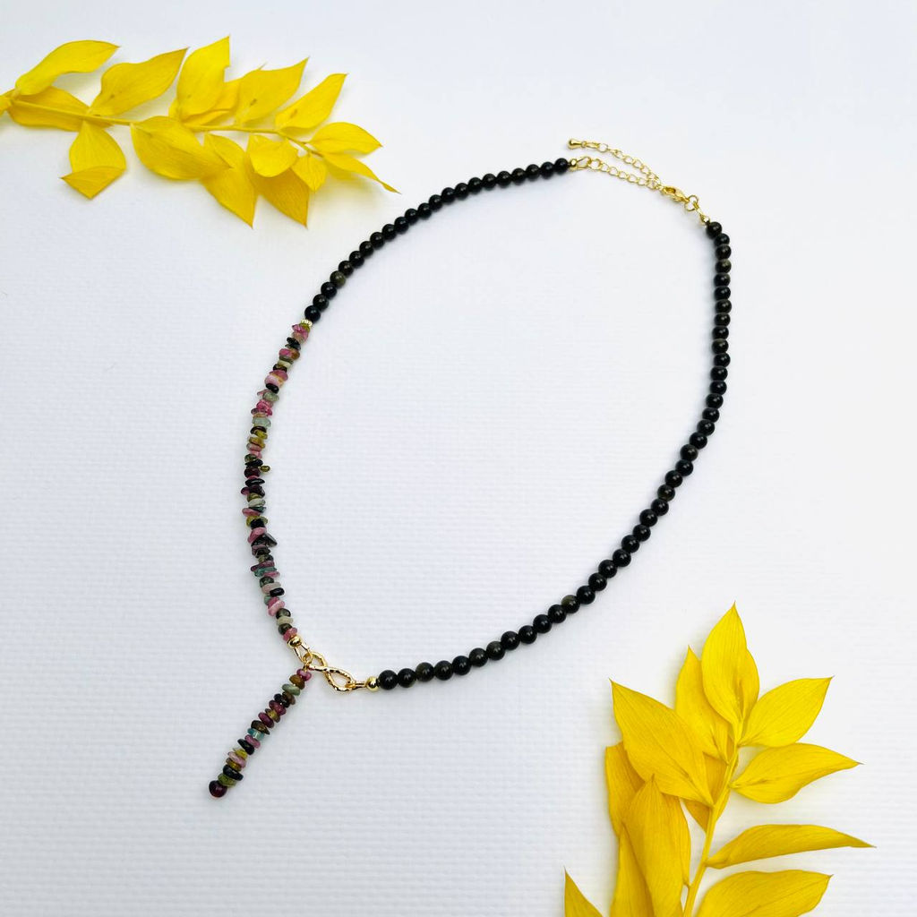 • Колье из золотистого Обсидиана и Турмалина микс 42 см +