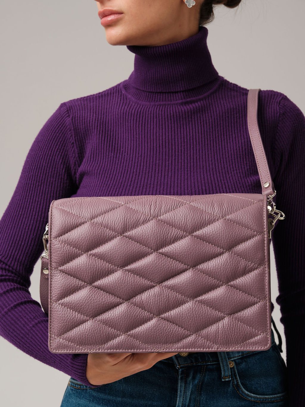 Женская кожаная сумка на плечо кросс-боди Azaro 30795 лиловая тень из натуральной кожи.