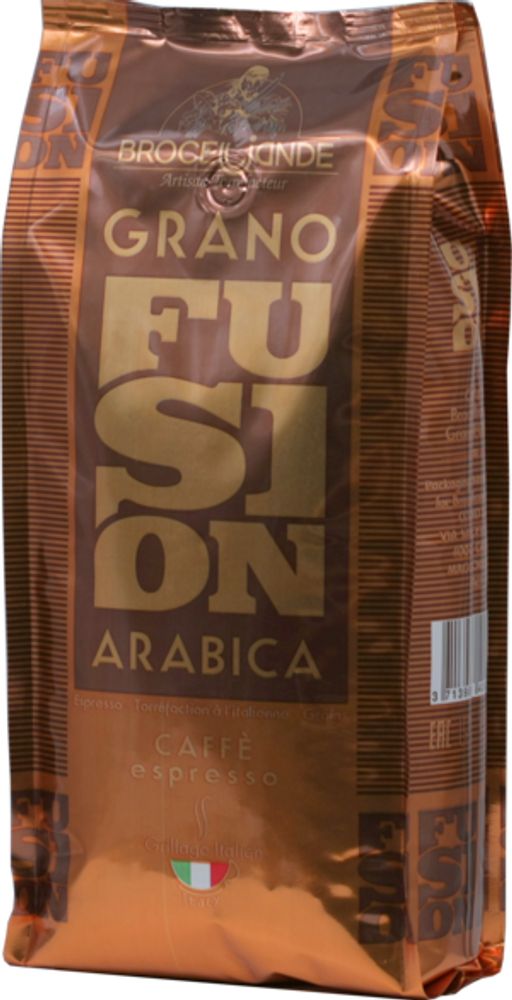 Натуральный зерновой кофе. Состав: 100% арабика.Grano Fusion бленд с очень ярким ароматом и крепким вкусом из латиноамериканской и африканской арабики. Напиток получается плотный и насыщенный, идеально подойдет для классического эспрессо и нежного капучино.Обжарка зерен средняя.