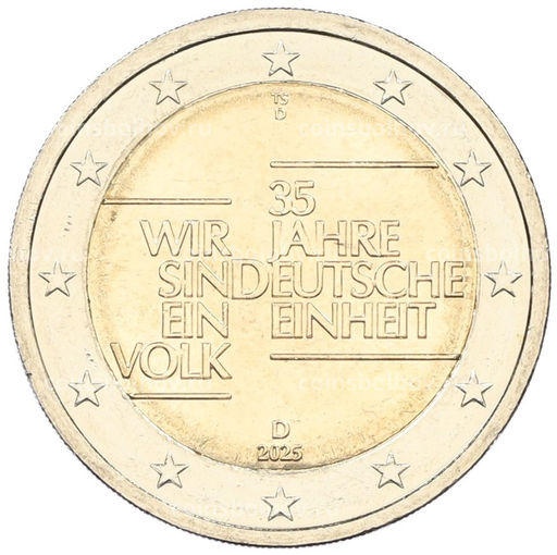 • Монета 2 евро 2025 года D Германия 35 лет объединению Германии
