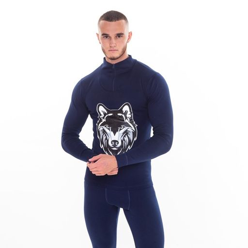 • Термобельё мужское НАЧЁС (фуфайка, кальсоны) принт волк, цвет тёмно-синий, размер 50