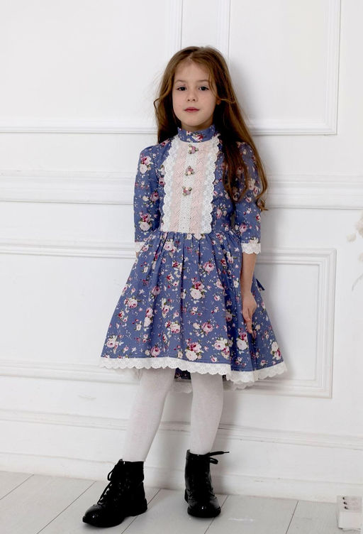 Платье для девочки для младшей, средней и старшей возрастной группы, предназначено для повседневной носки , а также подойдет для торжественных случаев в любое время. Платье выполнено из хлопковой ткани с нежным цветочным принтом .Платье декорировано изящными хлопковыми кружевами