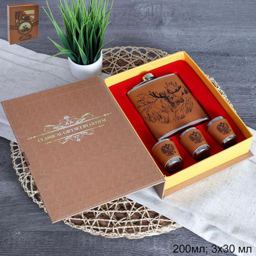 • Набор подарочный Книга охотника фляжка 200 мл + 3 стопки 30 мл / FL-113 /уп 60/