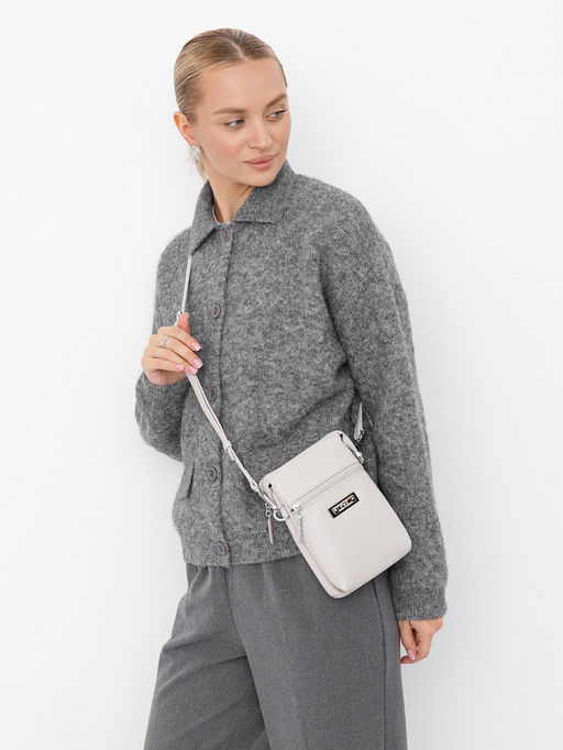 Сумка кросс-боди, выполнена из натуральной кожи.  Дополнена серебристой фурнитурой. Данная модель закрывается на молнию. Каркас мягкий. Носится на плече за съемный ремень с регулировкой длины.