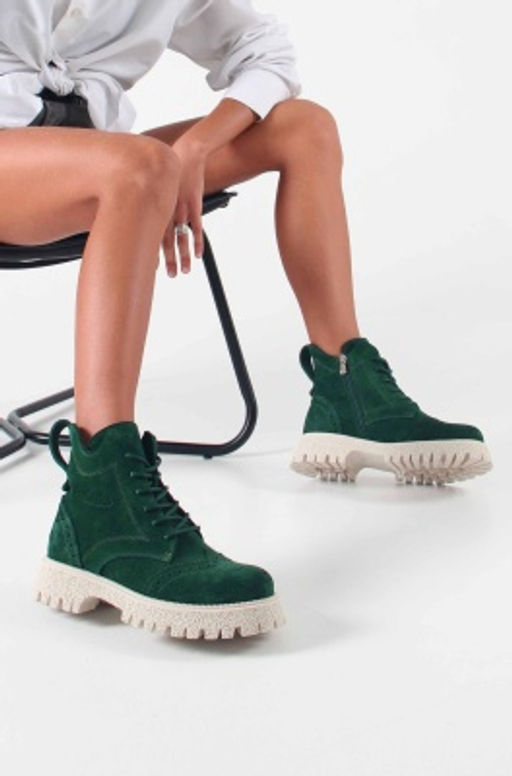 Ботинки 338.1541be. Зеленый замша / Байка