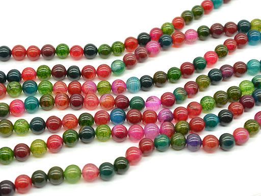 Бусины из агата "Вены Дракона" шарик 8мм, цв.ассорти, 37см, 47 бусин Радуга камня