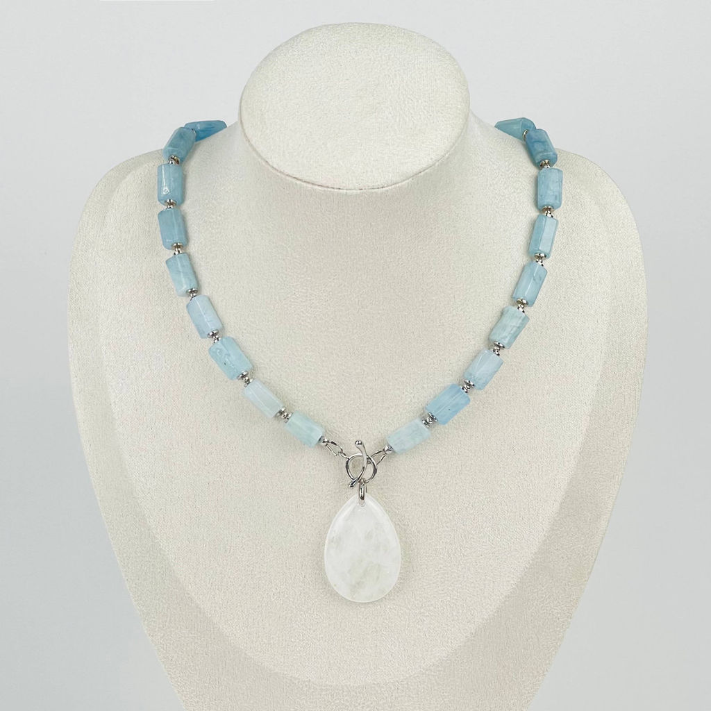 Колье из Аквамарина с Горным Хрусталем 42 см