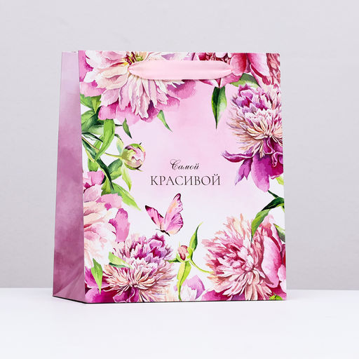 • Цена за 2 шт. Пакет подарочный ламинированный вертикальный Самой красивой, пионы, 23?27?11.5 см