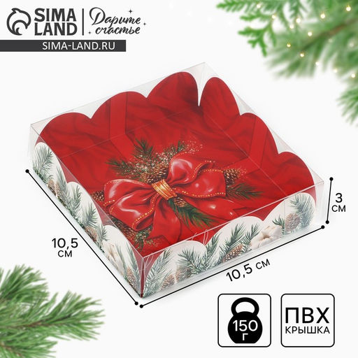 • Цена за 5 шт. Коробка для кондитерских изделий с пластиковой крышкой «С Новым годом!», бант, 10.5 х 10.5 х 3 см