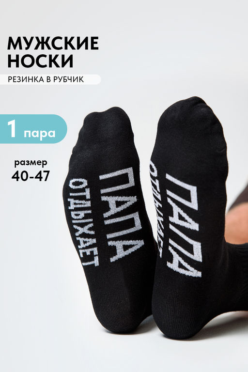 Мужские носки, комплект 1 пара. Широкая резинка по всей верхней части. Надпись на стопе Папа отдыхает