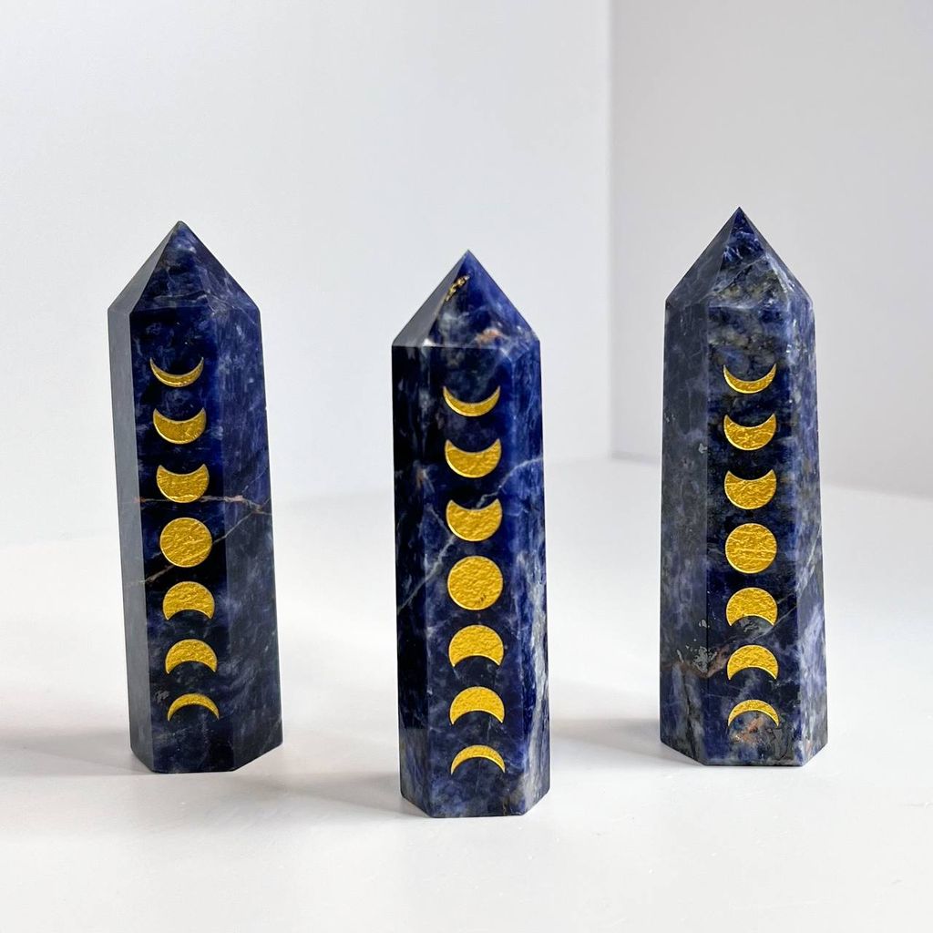 Кристалл Содалит с гравировкой "Лунный цикл"