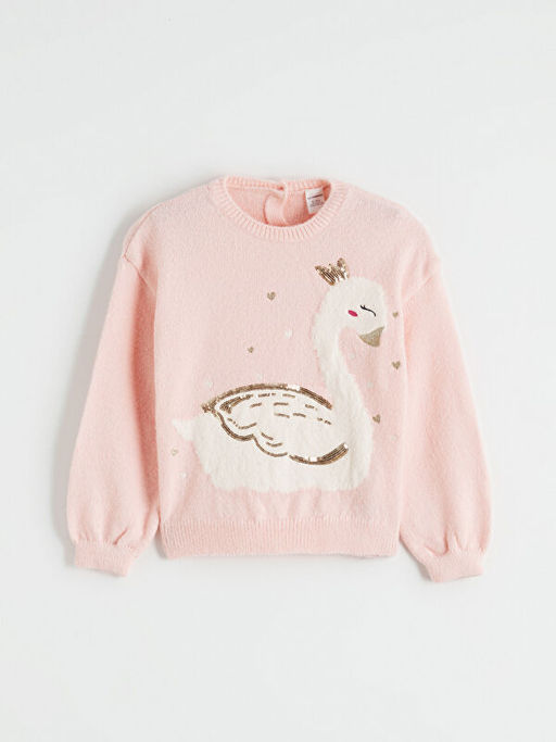 Ku?u Desenli K?z ?ocuk Triko Kazak