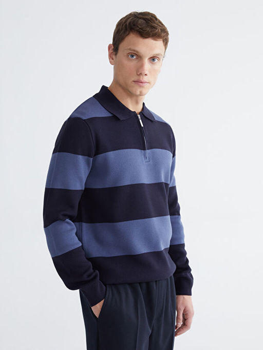 • Polo Yaka ?izgili Erkek Triko Kazak