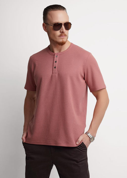 Футболка-поло с воротником-стойка и функциональной планкой на пуговицах, из трикотажного полотна "вафля". Изделие дополнено имиджевой фурнитурой и отделочными строчками. Простая и удобная модель, идеально подходящая для повседневного гардероба. Состав:
