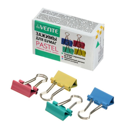 • Цена за 12 шт. Зажимы для бумаг 15 мм, 12 штук, deVENTE, металлические, МИКС х 4 цвета, картонная коробка