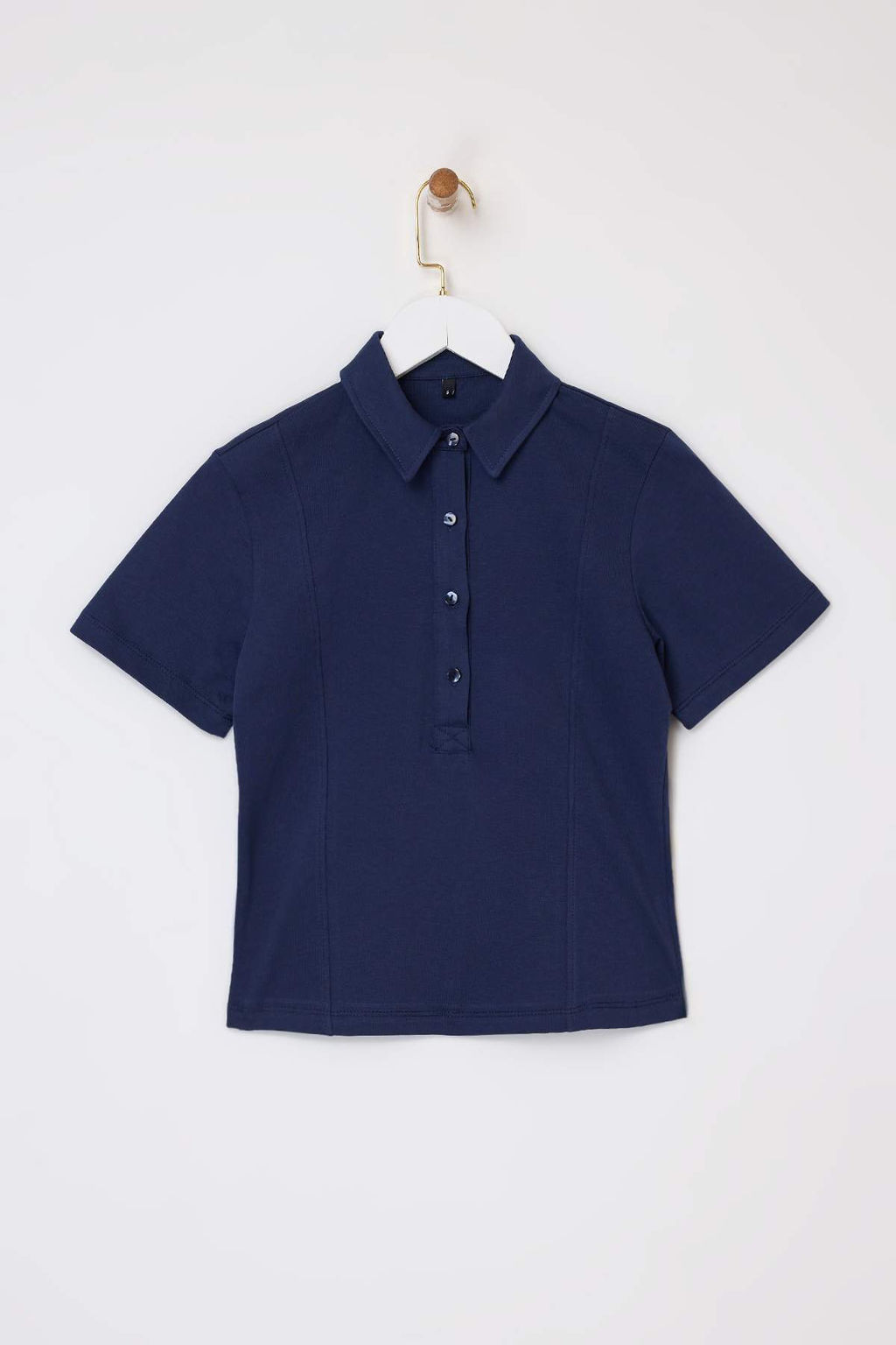 Lacivert Regular/Normal Kal?p Polo Yaka Dikis Detayl? Tok %100 Pamuk Orme Bluz TWOSS26BZ00043
