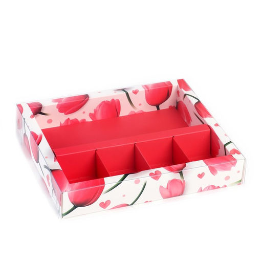 • Цена за 5 шт. Коробка под 4 конфеты и шоколад с ячейками «Тюльпаны» 18.8 х 15.7 х 3 см