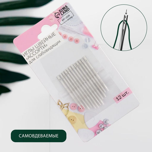 • Цена за 6 шт. Иглы швейные, самовдеваемые, d=0.76 мм, 3.6-4.2 см, набор 12 шт.