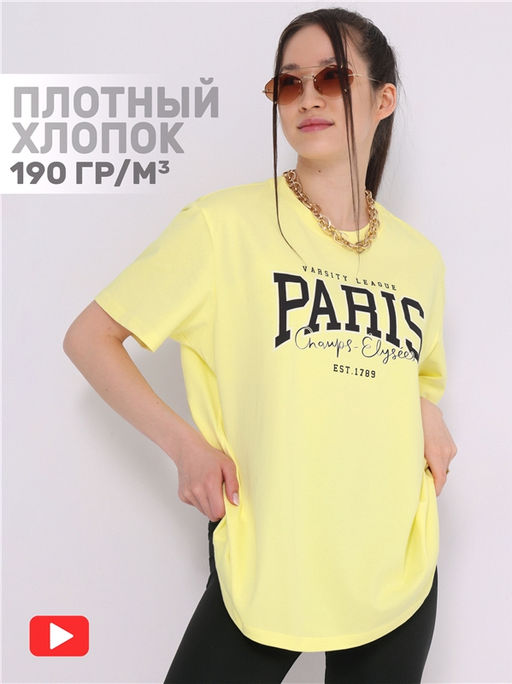 футболка,хлопок 100%,кулир / хлопок 100%,светло-желтый126 / - / Paris надпись / - / - / -,Стильная женская футболка выполнена из плотного кулира полотна из 100% хлопка. Изделие свободного силуэта, с округлым вырезом горловины и короткими рукавами, украшено принтом. Отличный вариант на каждый день! Уход: только машинная стирка (руками не стирать!) при температуре 40 градусов, без предварительного замачивания. Изделия с печатью и декором перед стиркой необходимо вывернуть на изнаночную сторону.