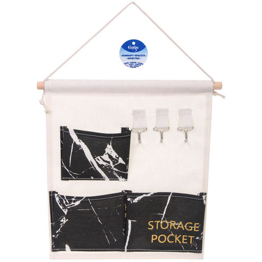 Карман настенный 3 отделения 3 крючка "ИДЕЯДОМА", цвет черный, 34*30см­