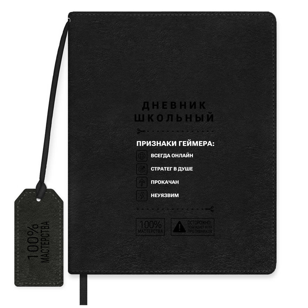 Дневник школьный арт. 73695 / 15 ФРАЗЫ С ХАРАКТЕРОМ (кожзам: А5+; твёрдый переплёт, материал обложки: искусственная кожа "Вачетто"; декор: блинтовое тиснение, печать шелкографией в одну краску; способ крепления блока: ниткошвейный; вн. блок: 48 л., белый офсет 80 г/м?, печать в одну краску, справочный материал: универсальная шпаргалка; отделка среза: окрашивание пантоном; закладка: одно ляссе; форзац: печать в одну краску; особенности: закладка из искусственной кожи; индивидуальная упаковка: ПЭТ-пакет)