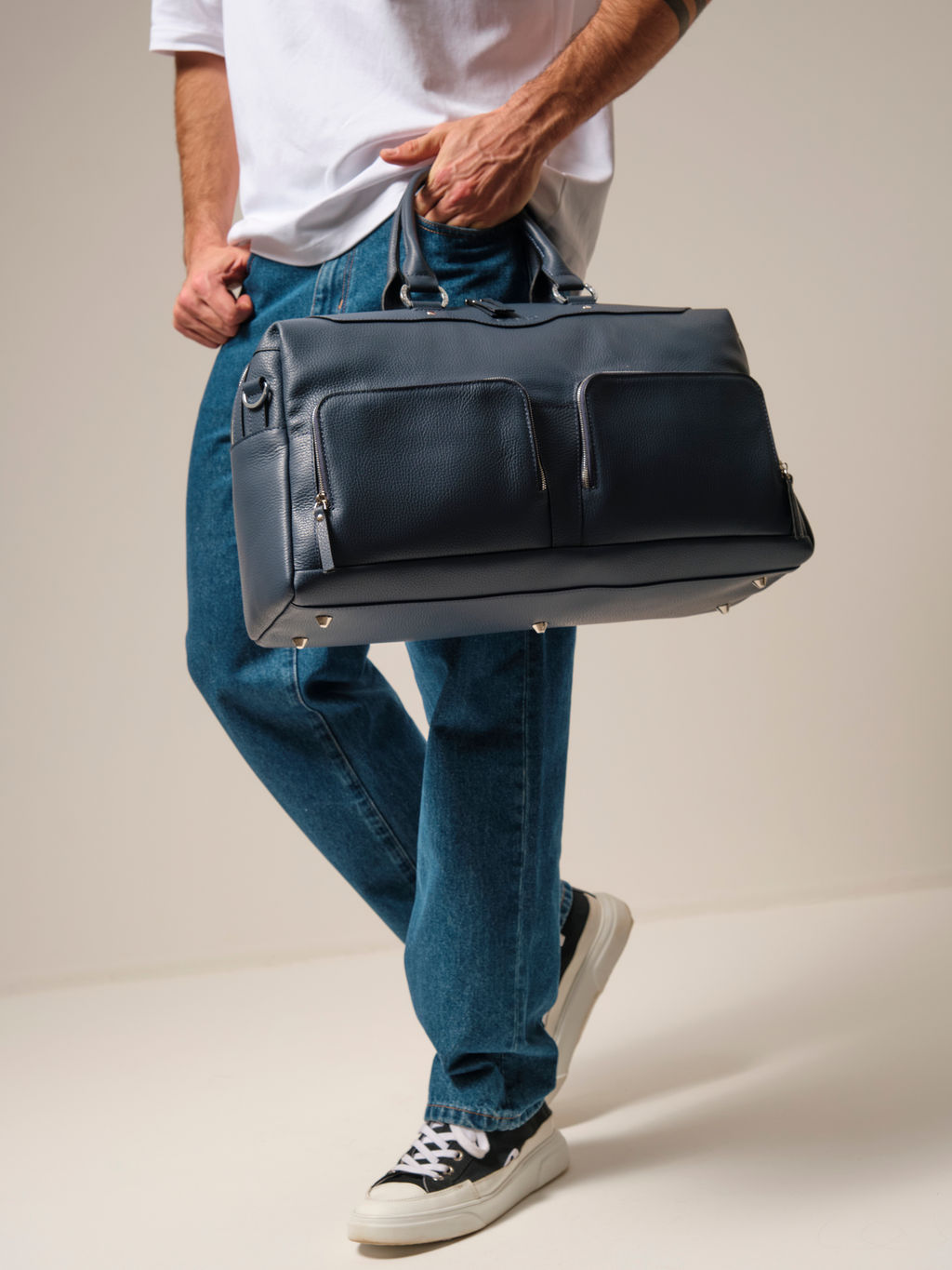 Представляем вам стильную и практичную дорожную сумку от Azaro 8042 в насыщенно-синем цвете, идеальную для путешествий, командировок или активного отдыха. Эта сумка станет незаменимым аксессуаром, который позволит удобно транспортировать все необходимые вещи. Изготовленная из натуральной кожи высокого качества, она обеспечивает долговечность и надежность. Удобные ручки и съемный плечевой ремень делают её комфортной в использовании, позволяя носить сумку различными способами. Вместительный основной отсек предлагает достаточно пространства для ваших вещей, а внешние карманы помогут поддерживать порядок, чтобы все было под рукой. Дорожная сумка Azaro обладает современным дизайном, что делает её стильным дополнением к вашему образу. Нейтральные цвета делают её универсальной, подходящей как для мужчин, так и для женщин. При этом, она достаточно легкая, что является дополнительным преимуществом при транспортировке. Выберите надежного спутника для своих путешествий с сумкой от Azaro, которая объединяет функциональность и стиль. -- Характеристики -- Цвет: синий Материал: Натуральная кожа Бренд: Azaro Тип: Дорожная сумка Страна-изготовитель: Россия Высота, см: 54 Ширина, см: 32 Глубина, см: 15 Материал подкладки: Хлопок Количество внешних карманов, шт: 2 Тип застежки: Молния Формат А4: не вмещает Высота ручек, см: 16 Вес товара, г: 1285 Ручки: На плечо;На локоть;Плечевой ремень Пол: unisex Группа товара: Багаж Количество внутренних карманов, шт: 2
