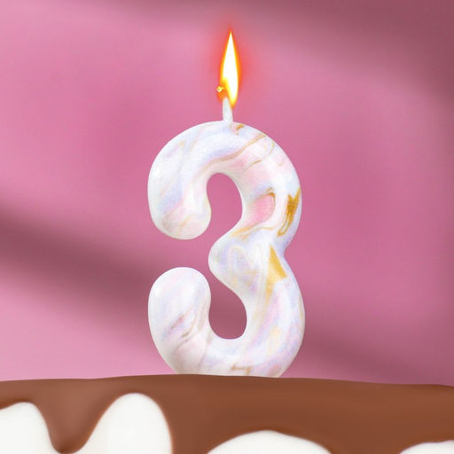 Цена за 3 шт. Свеча в торт «Белый мрамор», цифра 3, 5.5 см