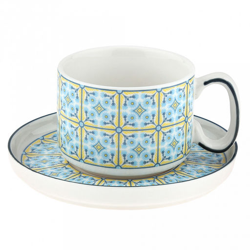 "Толедо" Чашка фарфоровая 200мл, д8,2см h5,9см, с блюдцем д13,9см h1,8см, глянцевая глазурь, с деколью, в коробке (Китай)