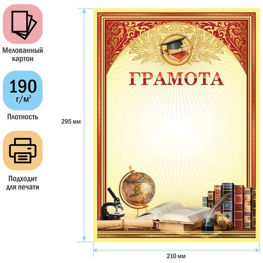 • Цена за 10 шт. Бланк "Грамота школьная" А4 (288387, ArtSpace) мелованный картон