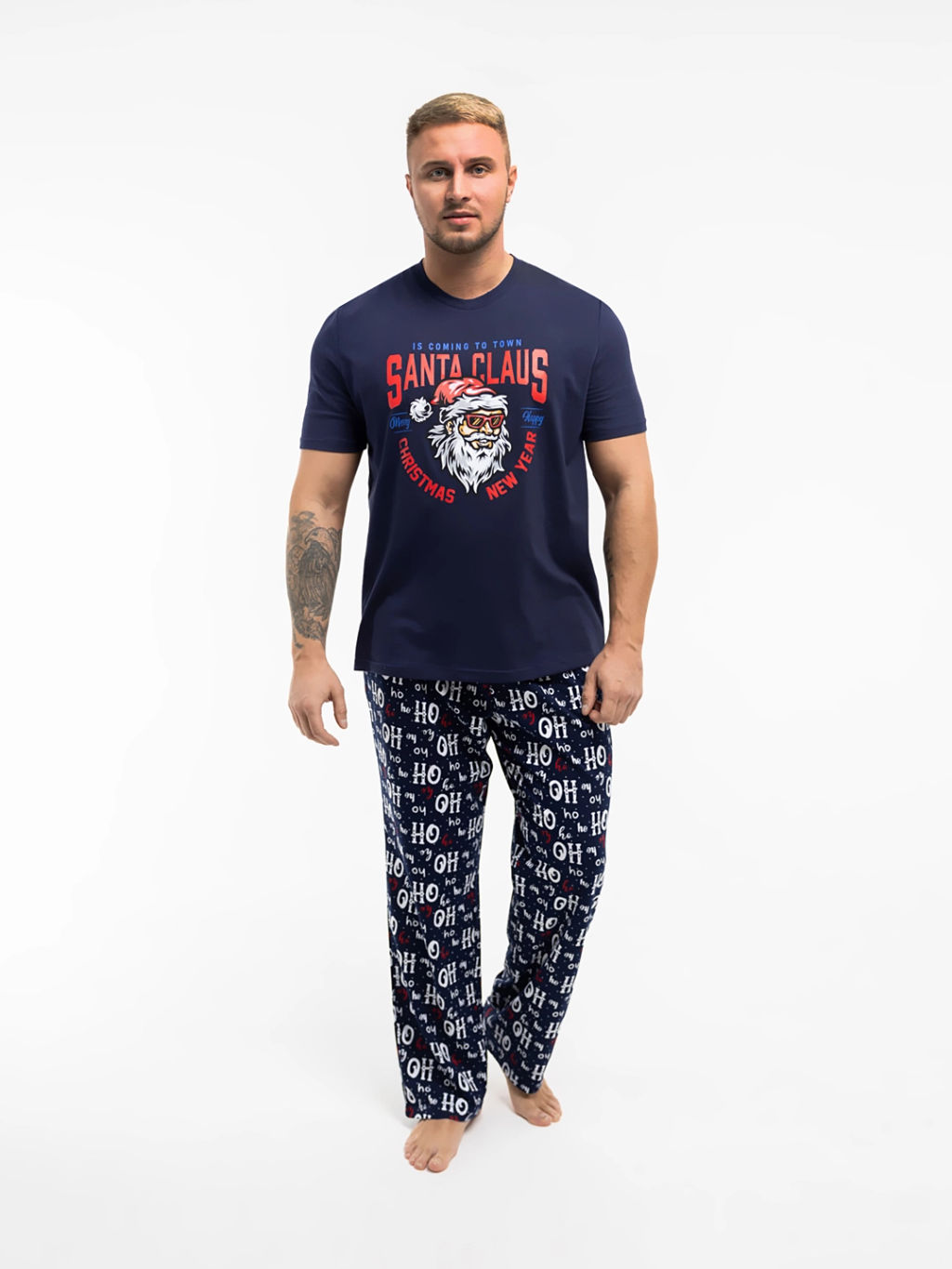 Мужской новогодний костюм из 100% хлопка, состоит из футболки с крутой печатью и ярких стильных брюк. Костюм идеально подойдет для празднования нового года, либо для новогодней фотосесии. Отличный вариант для новогоднего подарка.­