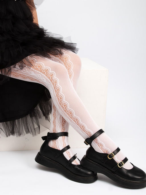 Лёгкие, капроновые колготки для девочки, декорированные ажурным узором. Модель прекрасно подойдет как для торжественных мероприятий, так и для повседневного образа.