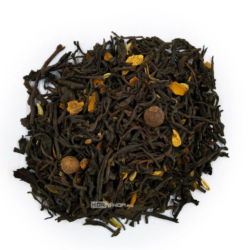 Состав: черный чай, имбирь, черный перец, гвоздика, кусочки корицы, фенхель и анис. Не содержит ароматизаторов.