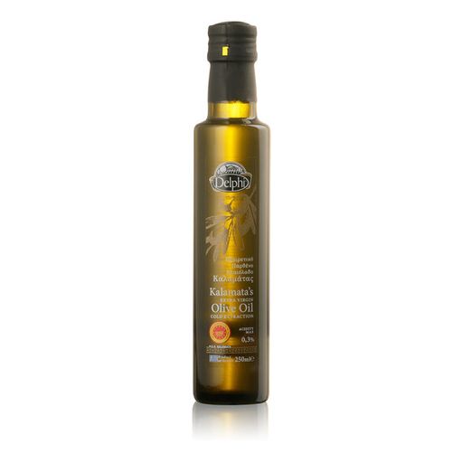 P.D.O. KALAMATA Объем 0,25л Состав: масло оливковое нерафинированное первого холодного отжима высшего качества Extra Virgin olive oil (100%). Пищевая/Энергетическая ценность на 100мл: 824 кКал /3389 кДж Жиры 92г из них: насыщенные жиры 13г, мононенасыщенные жиры 71г, полиненасыщенные жиры 8г. Кислотность ? 0,3%