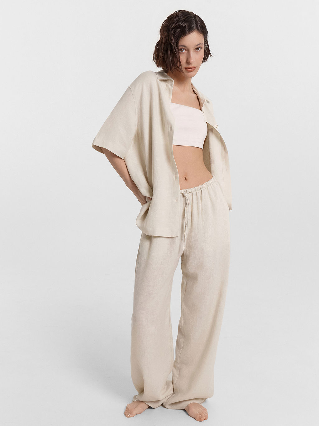 Женские домашние брюки свободного силуэта это сочетание удобства и естественного стиля для уютных домашних образов. Они выполнены из натурального льна и вискозы. такое сочетание материалов подарит легкость, мягкость и воздухопроницаемость, идеально подходя для домашнего гардероба. Свободный крой позволяет чувствовать себя непринужденно, обеспечивая максимальную свободу движений. Эластичный пояс с кулиской добавляет комфортную посадку и возможность регулировки, а боковые карманы делают модель практичной и функциональной. Низ изделия обработан швом вподгибку, что обеспечивает аккуратность и долговечность. Для создания стильного домашнего комплекта вы можете дополнить брюки рубашкой из этой же коллекции. Такой комплект обеспечит уют и гармоничный образ для комфортного отдыха!­