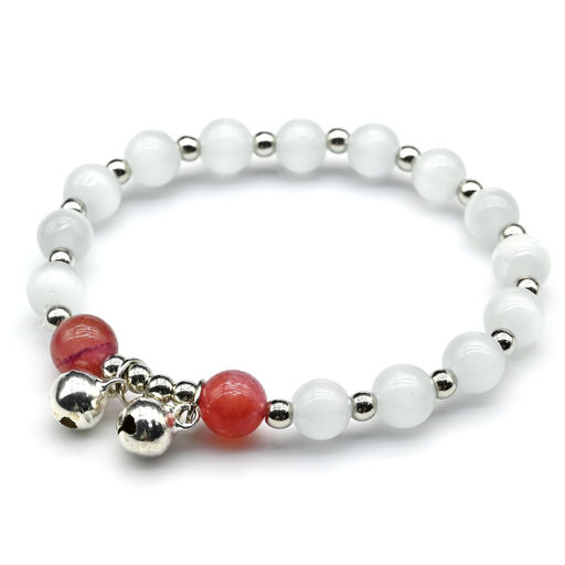 • Браслет из кошачьего глаза шарик 7,5мм с бубенцами, цв.белый