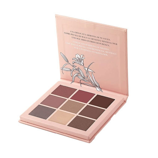 Палетка теней для век с минеральными компонентами объединила мягкие, гармоничные и нежные, как лепестки цветов, оттенки для естественного макияжа.