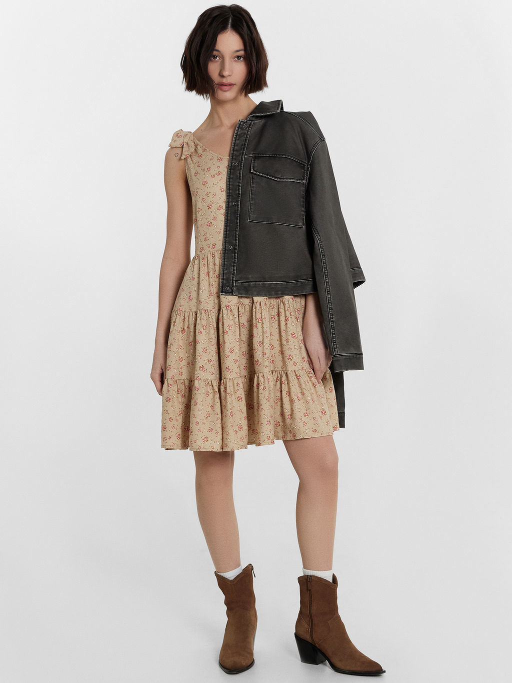 • Платье женское бежевое с цветочным принтом