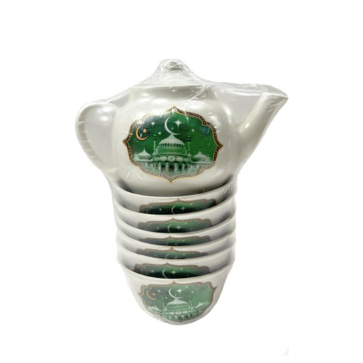Представляем Вам мусульманский чайный набор 7 предметов (чайник и 6 восхитительных пиал). Чайник с элегантными формами для заваривания трав и чаёв. Пиалы универсальны и могут послужить для для соуса, супа, каш, салатов, сладостей и любой еды. Прекрасно впишутся в любой интерьер.