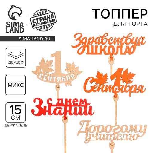 Деревянный топпер — это вид праздничного декора. Им украшают различные сладости, торты или пирожные. Эти резные аксессуары сделают подачу ваших угощений эффектной и поддержат тематику торжества. Набор: Нет. Высота держателя, см: 15. Тематика праздника: 1 Сентября. Тематика праздника: День учителя. Форма: Надпись. Особенности: Со съёмной ножкой. Наша разработка: Да. Примечание: Выбор конкретных цветов и моделей не предоставляется. На фотографиях могут быть представлены не все варианты..