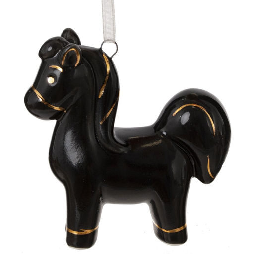 Декоративная фигурка "Лошадь" с подвесом стильный и символичный элемент декора, который станет прекрасным подарком к Новому году или талисманом на удачу. Выполненная из фарфора и окрашенная в черный цвет, фигурка символизирует энергию, силу и процветание. Лошадь традиционно ассоциируется с удачей и успехом в делах. Идеально подойдёт для оформления интерьера дома или офиса, а также станет оригинальным дополнением к новогодней композиции. Этот стильный сувенир будет радовать вас и ваших близких.