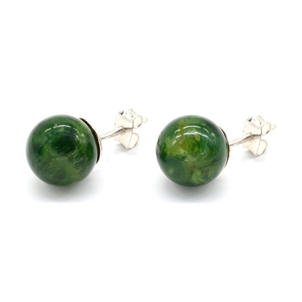 Серьги гвоздики шарик 10мм цв.зеленый, 1,8г