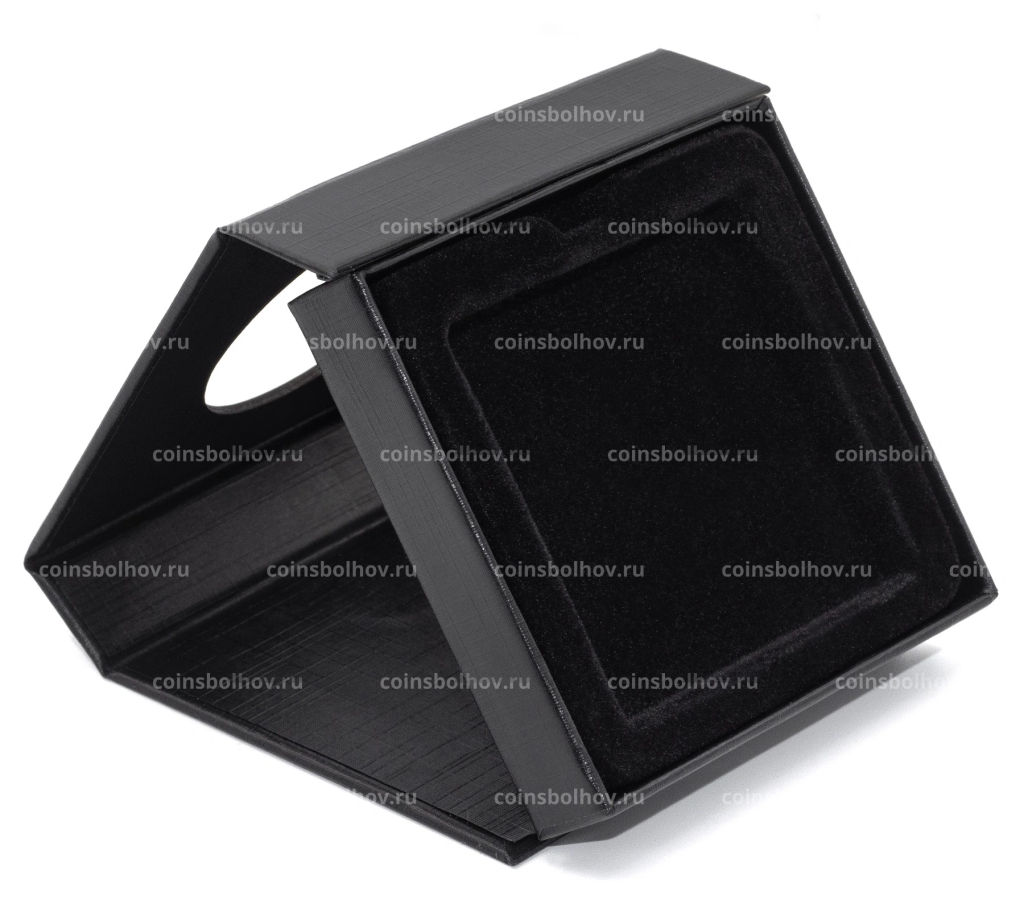 С прозрачным окошком для рассматривания и откидной подставкой для презентации монеты. Вкладыш с черной поверхностью под велюр. Неброская магнитная защелка. Наружный размер: 71 х 71 х 19 мм. Диаметр окна: 40 мм.